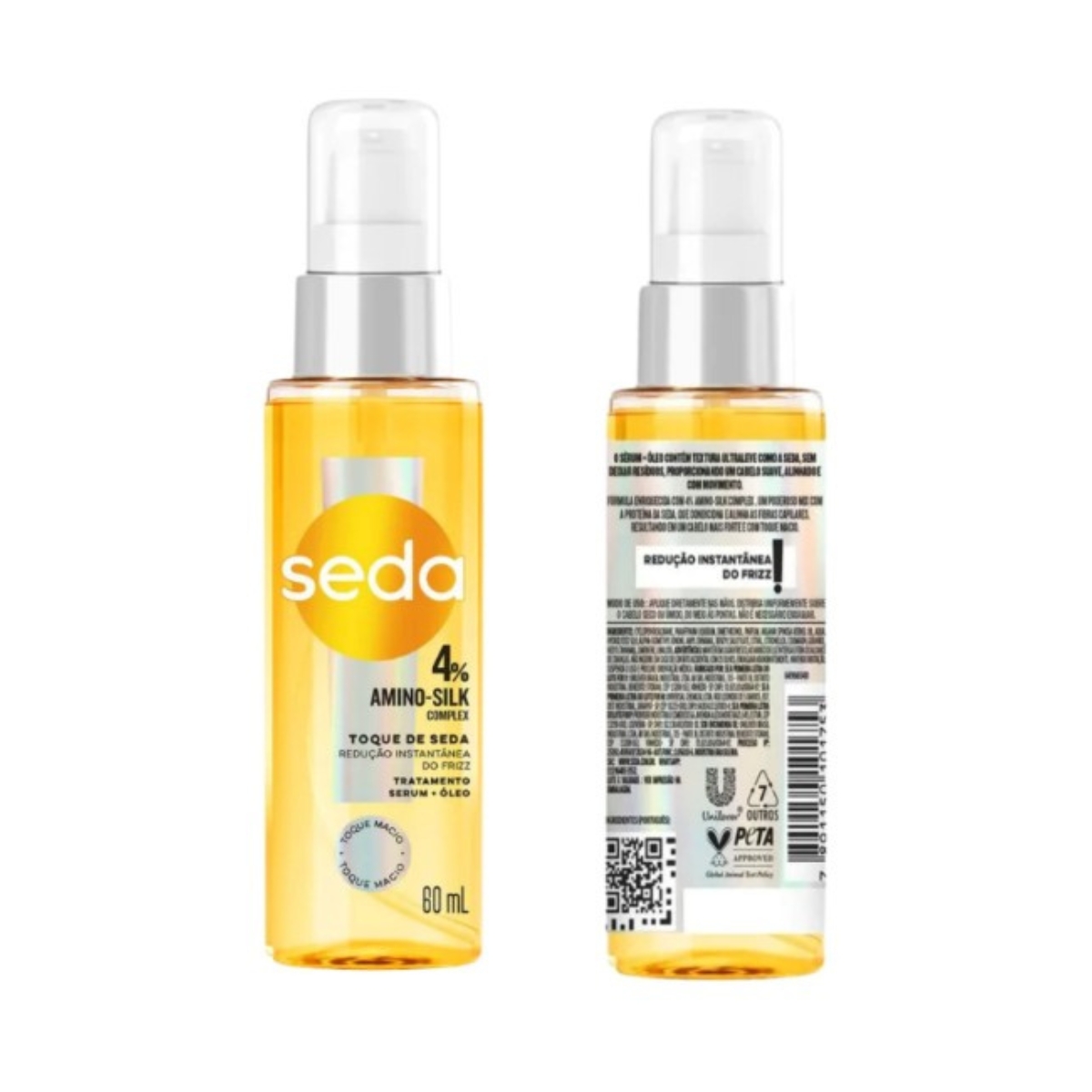 Seda Amino-Silk Complex 4% Sérum Redução de Frizz 60ml. Sérum capilar indicado para quem busca controle do frizz e fios mais alinhados no dia a dia, ajudando a deixar o cabelo mais macio, sedoso e com brilho. Ideal para usar como finalizador ou para complementar a rotina de cuidados, com textura leve e fácil de aplicar no comprimento e pontas, sem pesar quando usado na quantidade certa. Sugestão de uso: aplique uma pequena quantidade nas mãos e distribua no comprimento e pontas com o cabelo úmido ou seco, evitando a raiz.